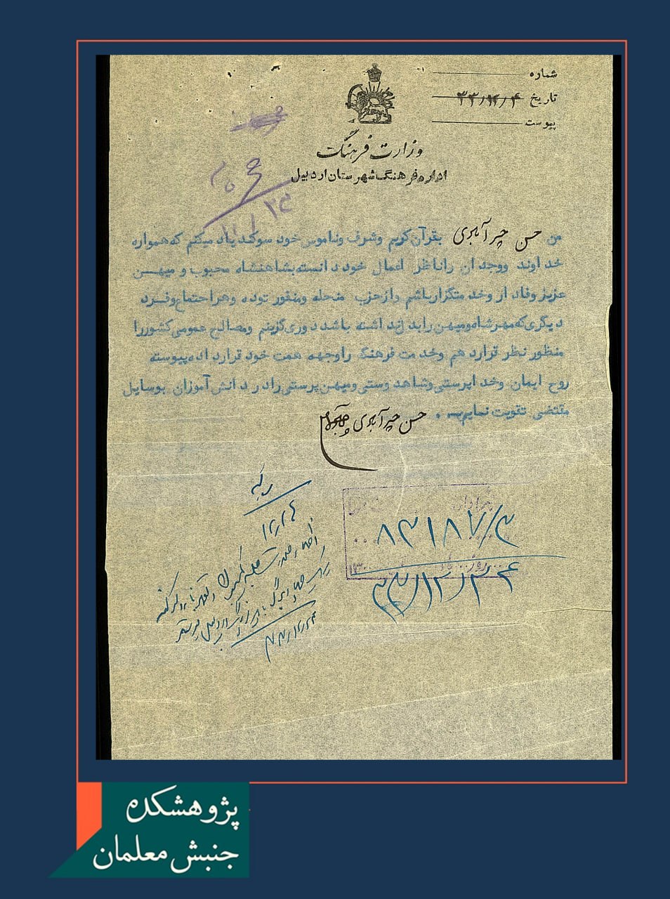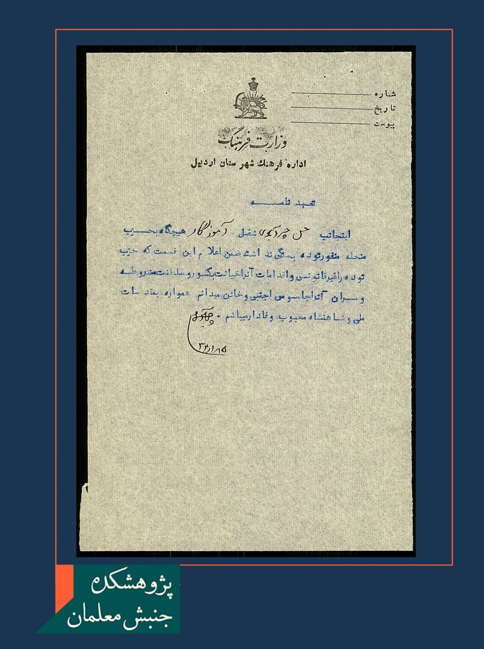 خانه/اسناد/اخراج حسن جیر آبادی آموزگار دبستانهای اردبیل به اتهام عضویت در حزب توده و منوط کردن بازگشت به کار او به نوشتن سوگند نامه و اعلام انزجار از حزب توده در روزنامه/ سالهای ۱۳۳۴-۱۳۳۳ اسناد اخراج حسن جیر آبادی آموزگار دبستانهای اردبیل به اتهام عضویت در حزب توده و منوط کردن بازگشت به کار او به نوشتن سوگند نامه و اعلام انزجار از حزب توده در روزنامه/ سالهای ۱۳۳۴-۱۳۳۳ اشتراک گذاری فیس بوک X لینکدین واتس آپ تلگرام اشتراک گذاری از طریق ایمیل چاپ