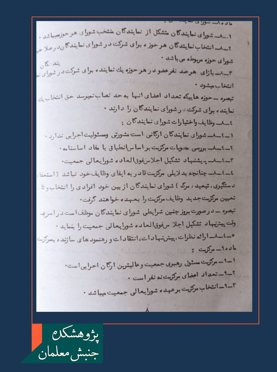 خانه/اسناد/اساسنامه جمعیت مستقل معلمان مبارز کردستان ایران ۳/ سال ۱۳۵۹ اسناد اساسنامه جمعیت مستقل معلمان مبارز کردستان ایران ۳/ سال ۱۳۵۹ اشتراک گذاری فیس بوک X لینکدین واتس آپ تلگرام اشتراک گذاری از طریق ایمیل چاپ