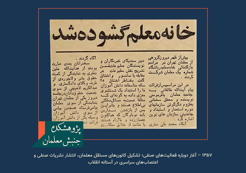 سال ۱۳۵۷ – آغاز دوباره فعالیتهای صنفی؛ تشکیل کانونهای مستقل معلمان، انتشار نشریات صنفی و اعتصابهای سراسری در آستانه انقلابسال ۱۳۵۷ – آغاز دوباره فعالیتهای صنفی؛ تشکیل کانونهای مستقل معلمان، انتشار نشریات صنفی و اعتصابهای سراسری در آستانه انقلابسال ۱۳۵۷ – آغاز دوباره فعالیتهای صنفی؛ تشکیل کانونهای مستقل معلمان، انتشار نشریات صنفی و اعتصابهای سراسری در آستانه انقلاب