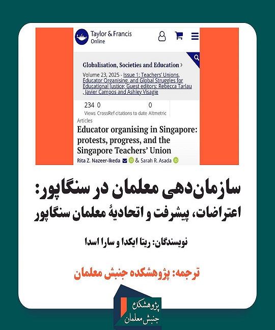 این مقاله، تحولات سازماندهی معلمان در سنگاپور را با تمرکز بر اتحادیۀ معلمان سنگاپور (STU) بررسی میکند؛ کشوری که اگرچه در آن اتحادیههایی برای معلمان وجود دارد، اما اقدامات صنعتی نادر است. مقاله میپرسد که چرا و چگونه سازماندهی معلمان، تحت هدایت اتحادیۀ معلمان سنگاپور ، دگرگون شده است. یافتهها نشان میدهند که پویاییهای تاریخی، سیاسی و اجتماعیاقتصادی باعث تحول اتحادیۀ معلمان سنگاپور شده است. اتحادیۀ معلمان سنگاپور طی بیش از هفتاد سال، نقش مدافع، حامی و مشوق را در حوزۀ اتحادیهگرایی صنعتی، حرفهای و اجتماعی ایفا کرده و بنیان توسعۀ معلمان و کیفیت بالای آموزش سنگاپور را پایهگذاری کرده است. با این حال، مسائل پابرجا در حوزۀ سلامت روان و فشار کاری معلمان، ضرورت بازنگری در روابط دولت و اتحادیه را گوشزد میکند.