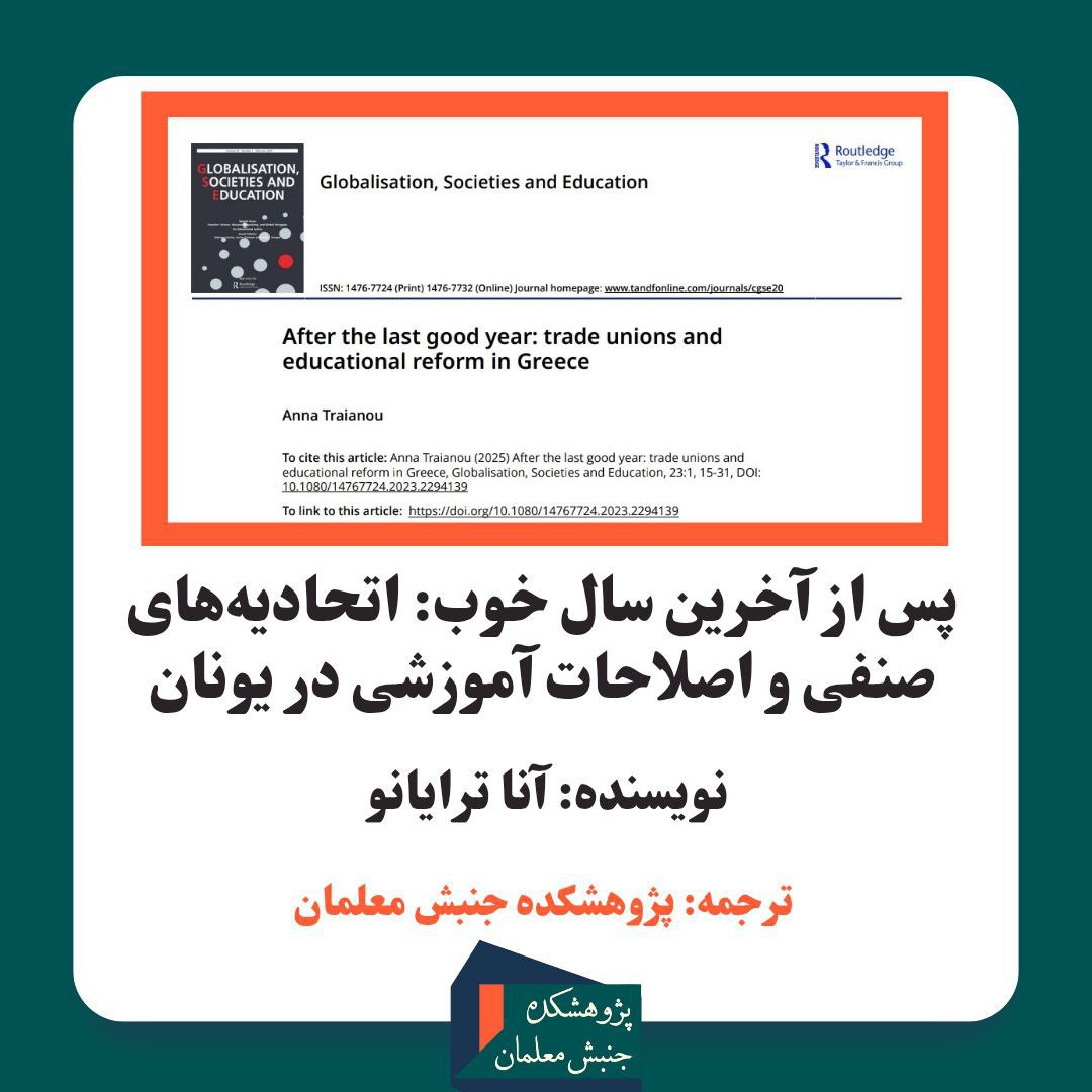 این مقاله چالشها و دوراهیهای اتحادیههای صنفی معلمان در مواجهه با اصلاحات آموزشی را بررسی میکند. تمرکز مقاله بر ارزیابی معلمان و مدارس است؛ در فضایی آکنده از ریاضت اقتصادی و در زمان بازسازی دولت یونان (۲۰۲۳-۲۰۱۰). مقاله با مصاحبه با اعضای ارشد دو اتحادیۀ اصلی معلمان یعنی دیاوای و اوالامای تهیه شده. استدلال اصلی مقاله این است که بحرانهای موجود، باعث شدهاست اتحادیهها در راهبردها و تصمیمهایشان قطعیت لازم را نداشته باشند. با این حال، اتحادیهها همچنان فعال ماندهاند و برای اصلاح نظام آموزشی و بهبود شرایط کاری تلاش میکنند. مطالبات معلمان در یونان، ترکیبی از خواستههای اقتصادی و سیاسی است؛ ویژگی مشترک اتحادیههای معلمان سراسر اروپای جنوبی این است که هم بر خواستههای صنفیاقتصادی متمرکزند و هم بر مطالبات سیاسی.