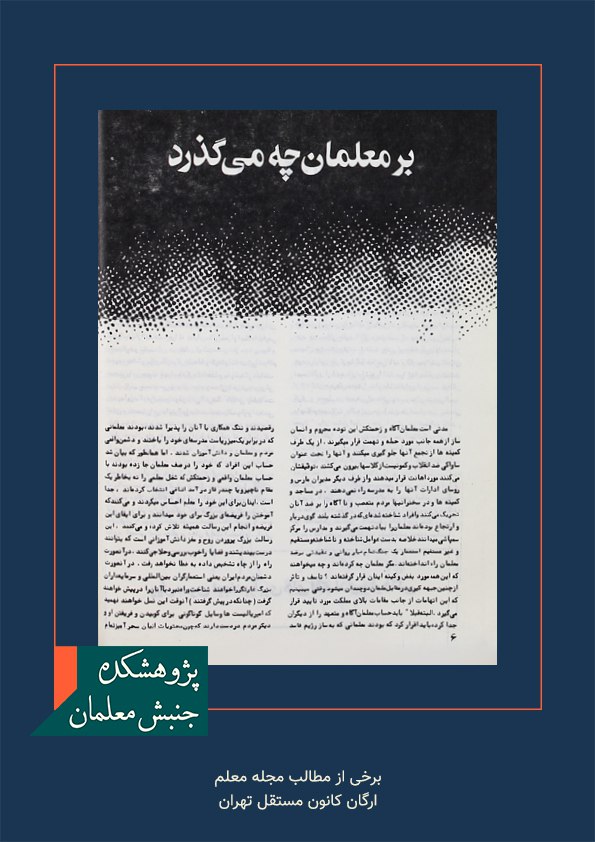 برخی از مطالب مجله معلم، ارگان کانون مستقل معلمان تهران – سال ۱۳۵۸برخی از مطالب مجله معلم، ارگان کانون مستقل معلمان تهران – سال ۱۳۵۸برخی از مطالب مجله معلم، ارگان کانون مستقل معلمان تهران – سال ۱۳۵۸